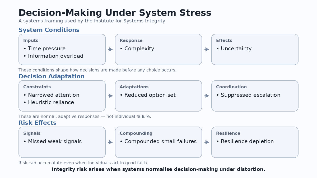 Decision-Making Under System Stress: Why Good People Make Predictably Weaker Decisions — and What Integrity Requires